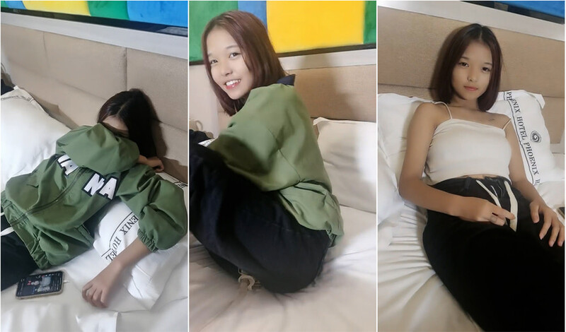 五官端正青春期短發萌妹,大眼靜清純無比、懵懵懂懂,放倒在床上害羞捂臉